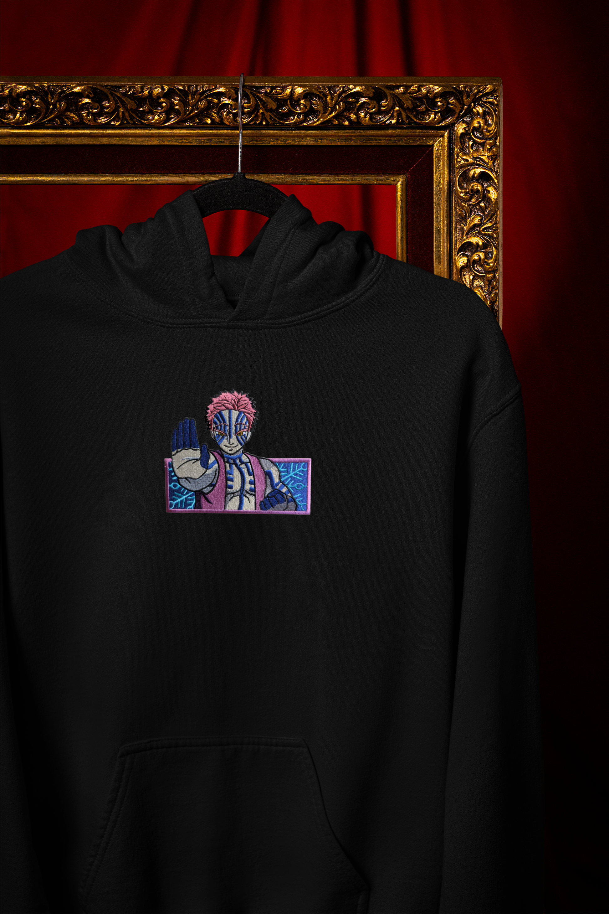 Plonge dans la fureur et l’élégance d’Akaza, le démon au cœur partagé de Demon Slayer (Kimetsu no Yaiba). Ce hoodie capture toute la dualité du personnage — sa puissance brute et sa recherche éternelle de dignité — à travers une broderie d’une précision exceptionnelle.