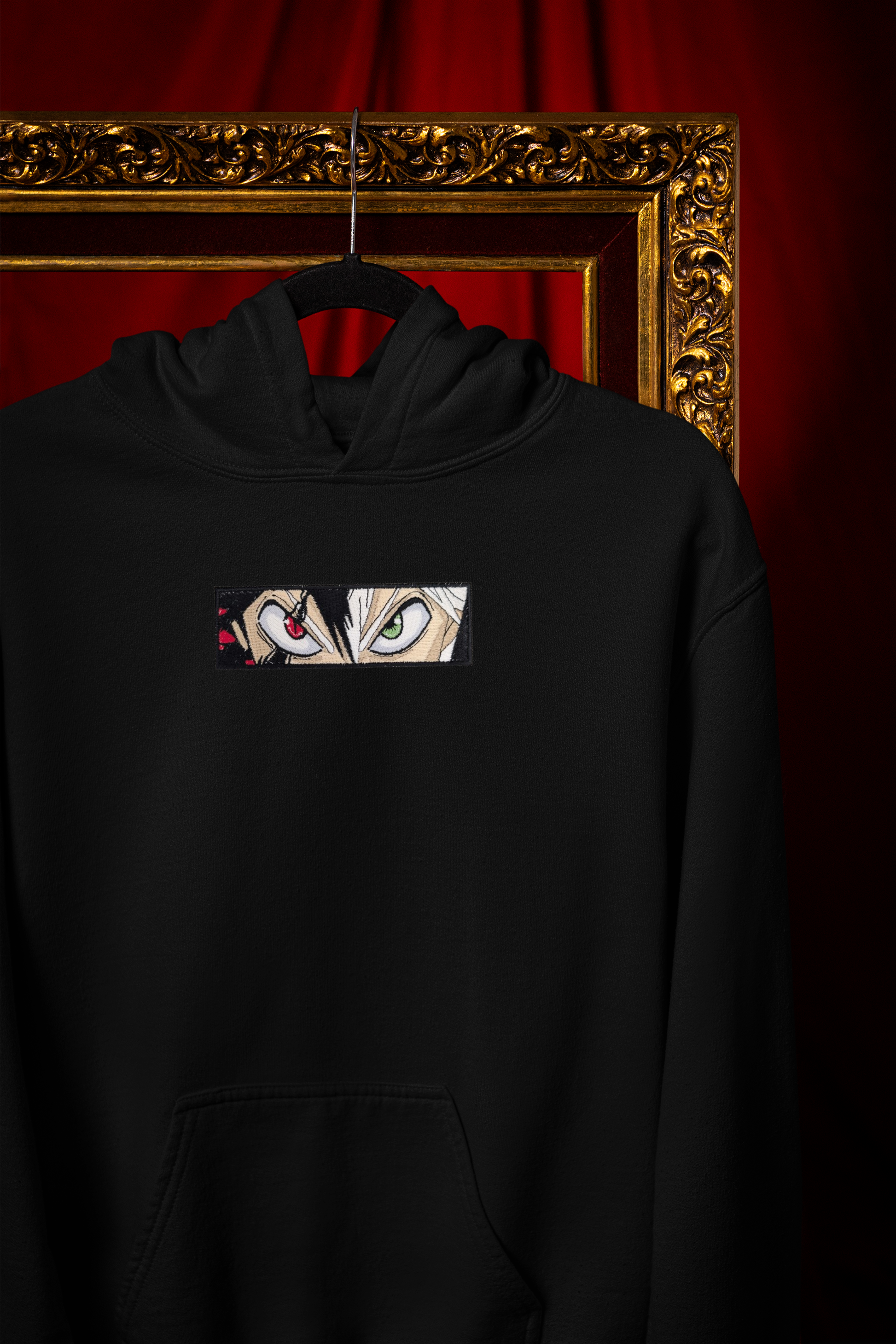 Plonge dans l’intensité brute et l’énergie explosive d’Asta avec ce hoodie brodé premium inspiré de Black Clover.