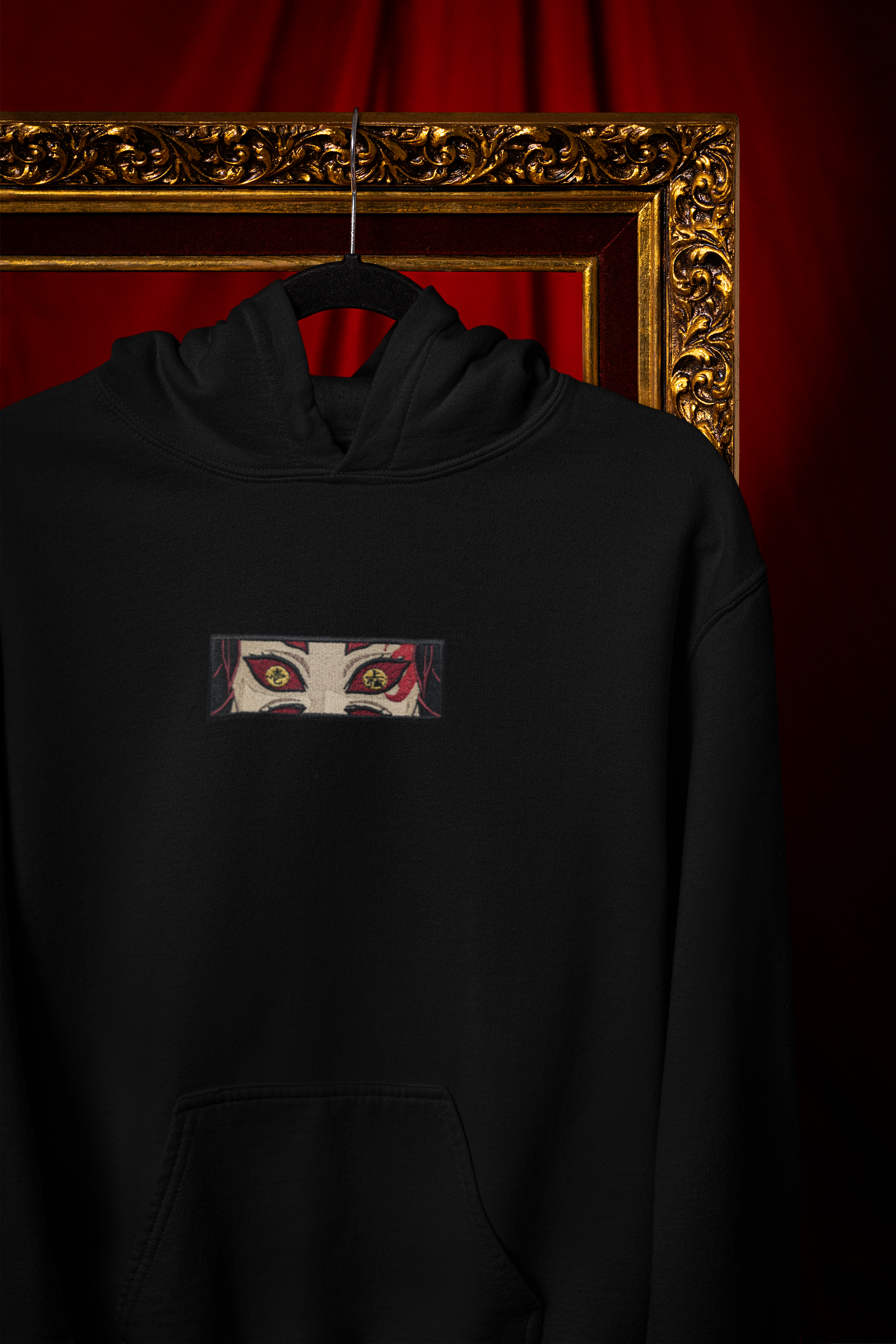 Incarne la puissance et l’intensité de l’un des plus redoutables démons de Demon Slayer avec ce hoodie brodé du regard perçant de Kokushibo, la Lune Supérieure n°1. Ce design saisissant retranscrit toute la tension de son regard multiple, symbole de sa puissance démoniaque et de sa maîtrise absolue du souffle de la Lune.
