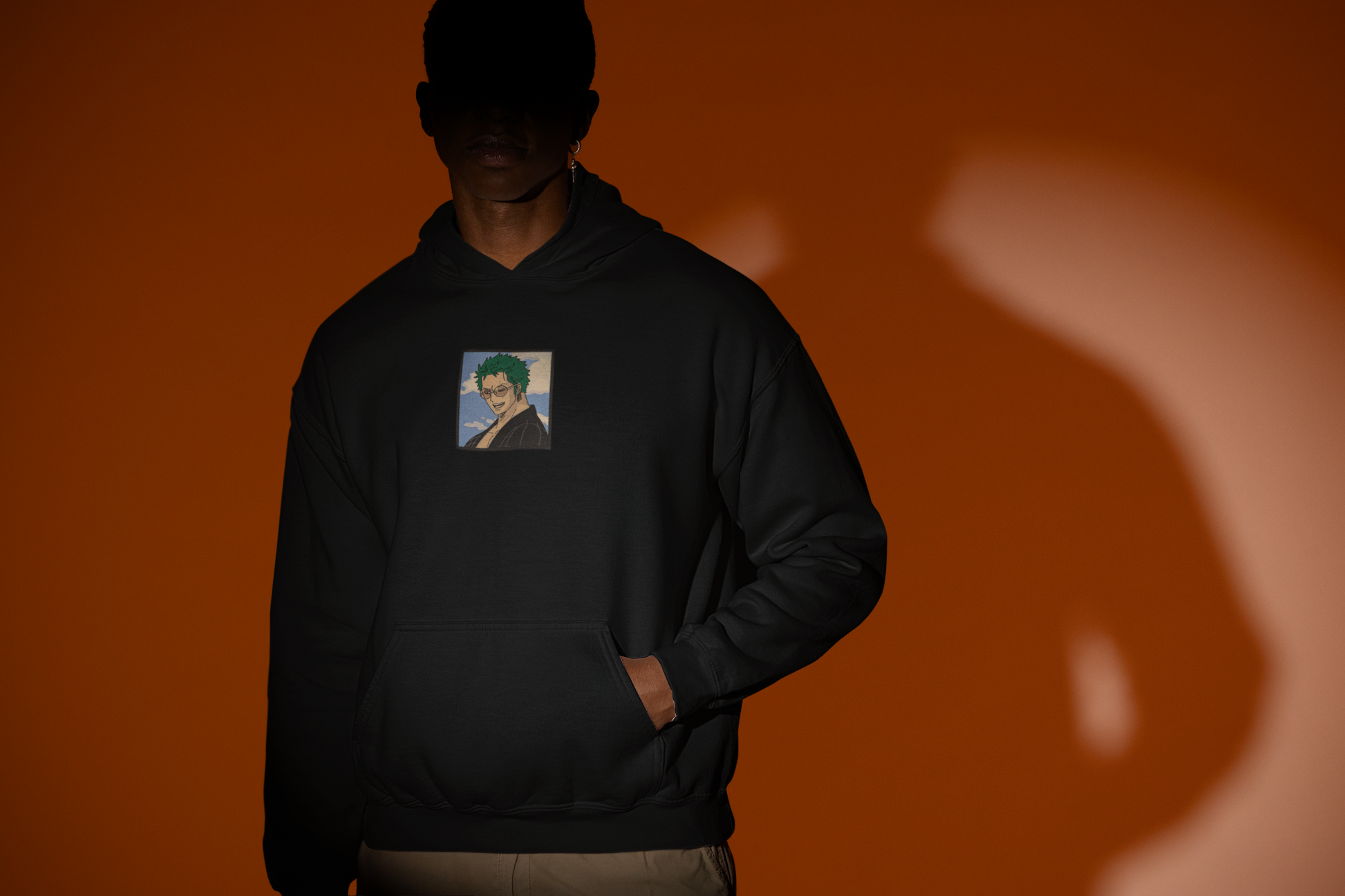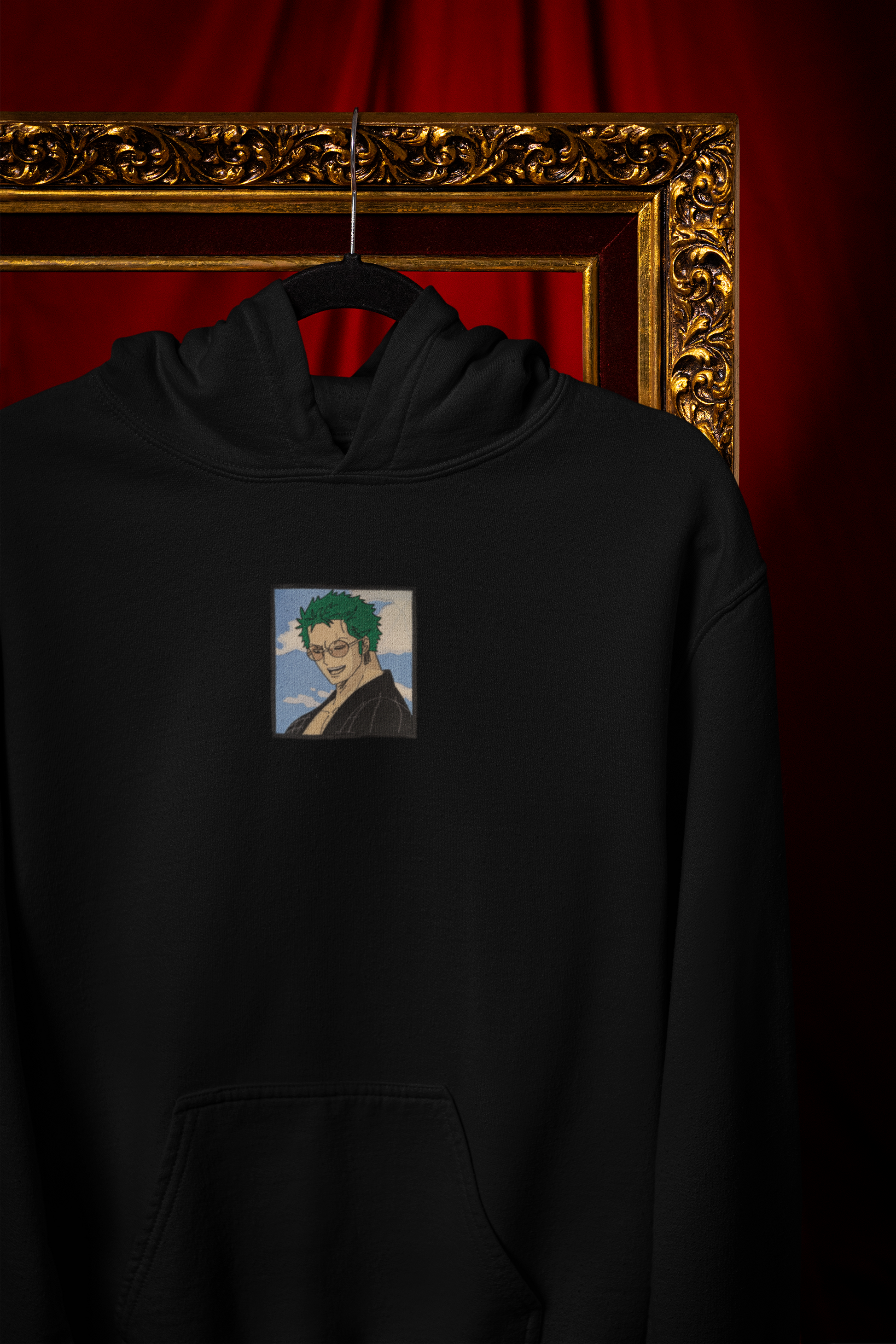 Zoro en kimono, lunettes de soleil sur le nez, sabres au repos… mais prêt à dégainer à tout moment.