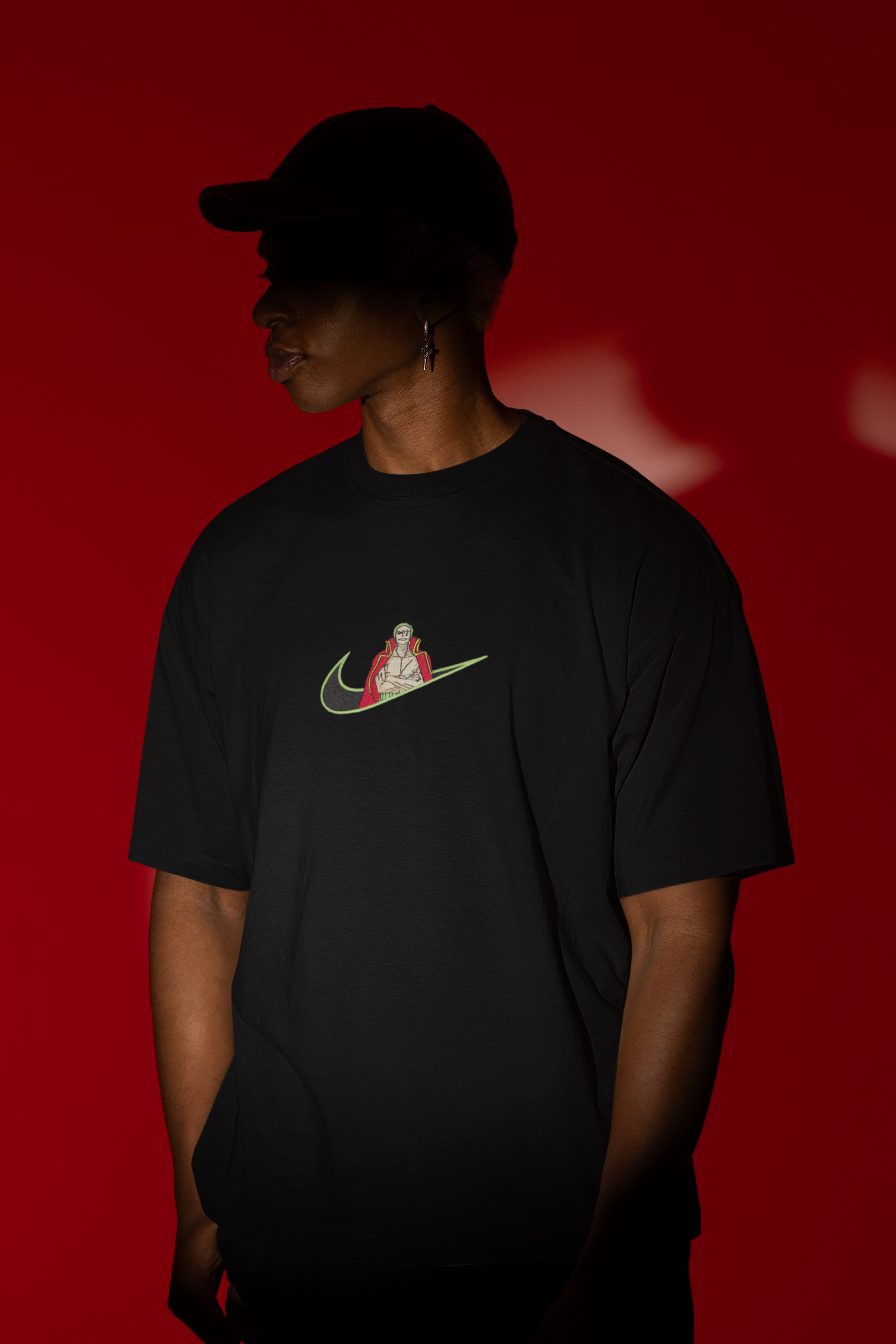 Puissance, loyauté, silence. Un t-shirt pour ceux qui savent que Zoro n’a besoin que de ses sabres pour s’exprimer.